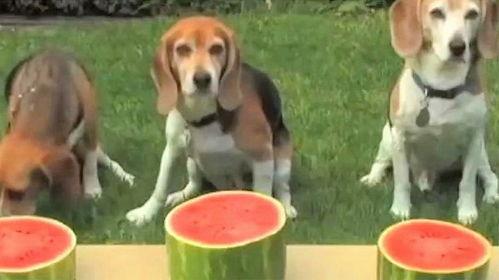 1. 瓜皮大战:狗狗们吃瓜时,往往会把瓜皮当作玩具,互相追逐、嬉戏。